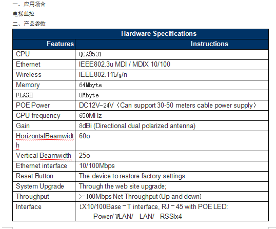 高通QCA9531 2.4GHz电梯监控无线CPE