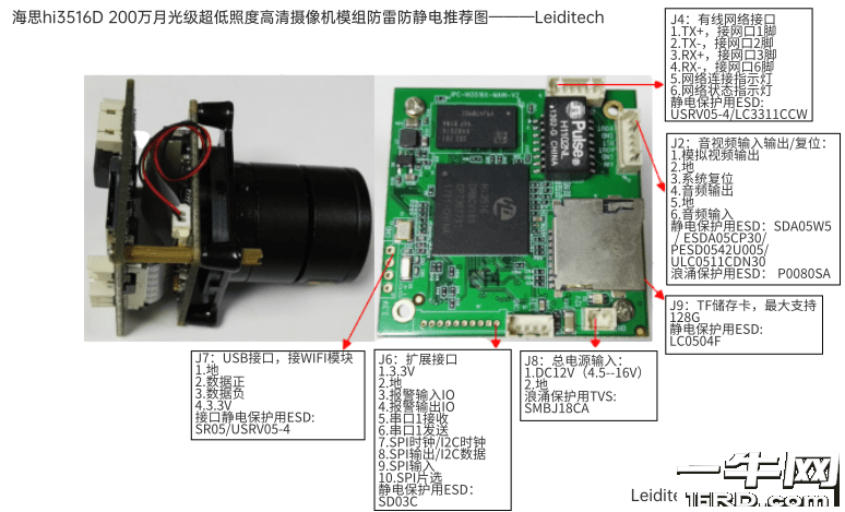 海思hi3516D 200万月光级超低照度高清摄像机模组防雷防静电推荐图