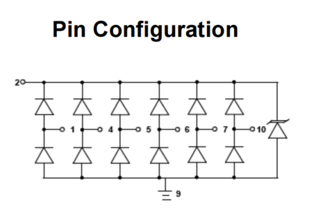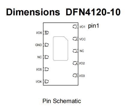 封装是DFN4120 (4.1×2.0×0.55mm), DFN封装有助于减小结电容,并很好的与数据线连接,减少引线电感。