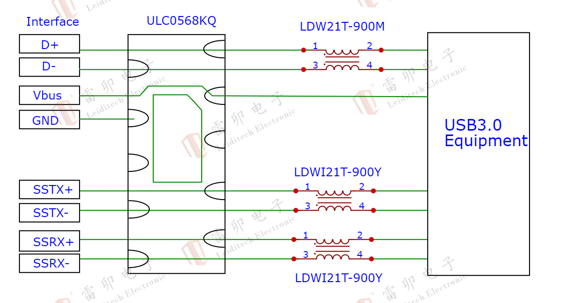 Leiditech ULC0568KQ为一款集成式USB3.0静电保护二极管,USB3.0放一颗ULC0568KQ即可完成ESD保护。ULC0568KQ可以做为以下品牌国产替代理想选择:Amazing(AZ1065-06F,AZ1165-06F),Bourns(CDDFN10-0506N),AOS(AOZ8936DI,AOZ8937DI)等品牌,ULC0568KQ与这些型号完全PIN TO PIN。