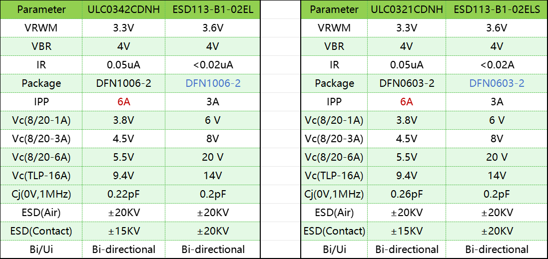 ESD管ESD113-B1-02EL(S)国产替代型号ULC0342CDNH,ULC0321CDNH