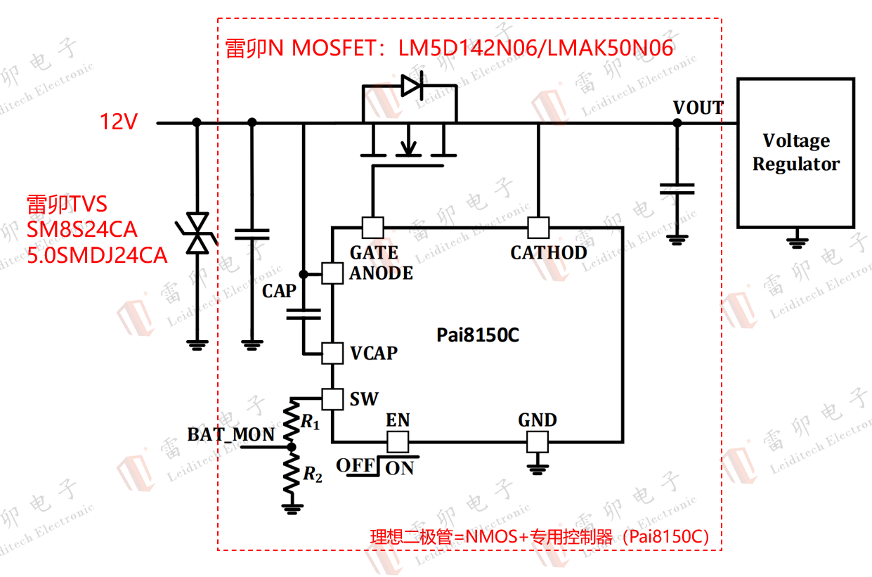 理想二极管+雷卯TVS:过抛负载P5A测试 功耗降97%